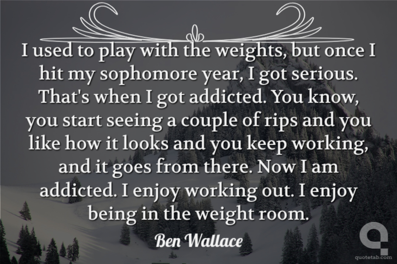 I used to play with the weights, but once I hit my sophomore year, I got serious. That's when I got addicted. You know, you start seeing a couple of rips and you like how it looks and you keep working, and it goes from there. Now I am addicted. I enjoy working out. I enjoy being in the weight room.
