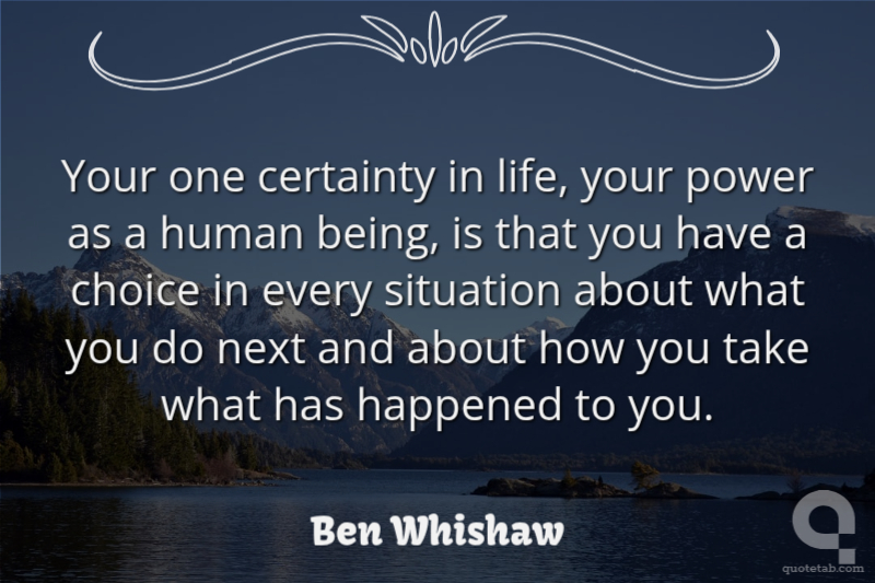Your one certainty in life, your power as a human being, is that you have a choice in every situation about what you do next and about how you take what has happened to you.