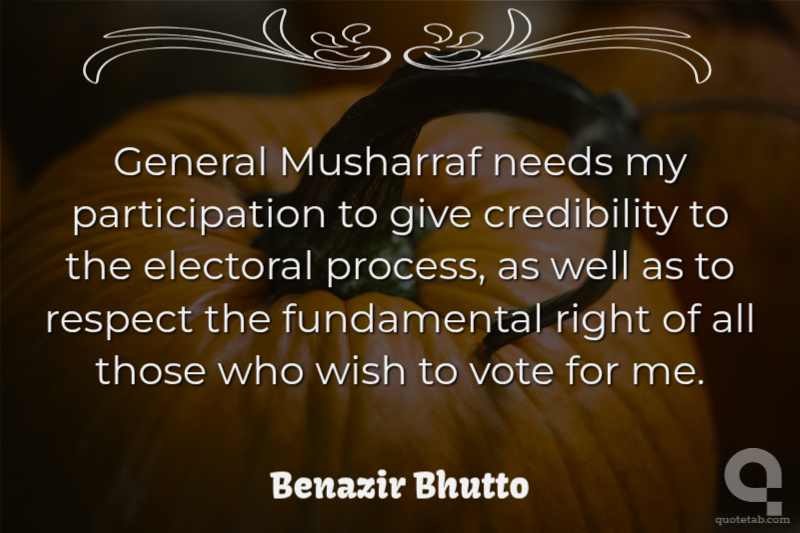 General Musharraf needs my participation to give credibility to the electoral process, as well as to respect the fundamental right of all those who wish to vote for me.