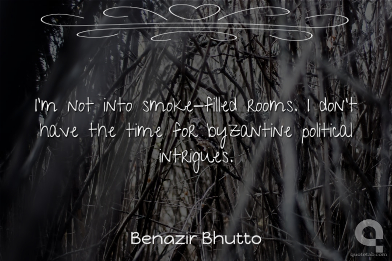 I'm not into smoke-filled rooms. I don't have the time for byzantine political intrigues.