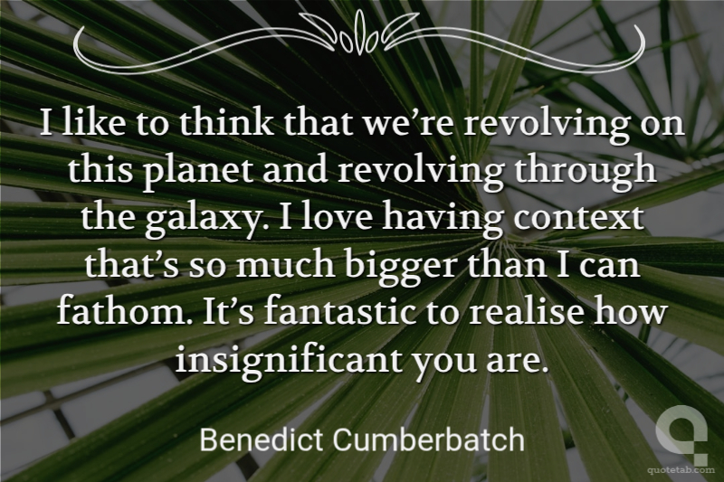 I like to think that we’re revolving on this planet and revolving through the galaxy. I love having context that’s so much bigger than I can fathom. It’s fantastic to realise how insignificant you are.