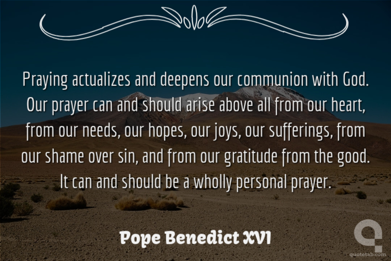 Praying actualizes and deepens our communion with God. Our prayer can and should arise above all from our heart, from our needs, our hopes, our joys, our sufferings, from our shame over sin, and from our gratitude from the good. It can and should be a wholly personal prayer.
