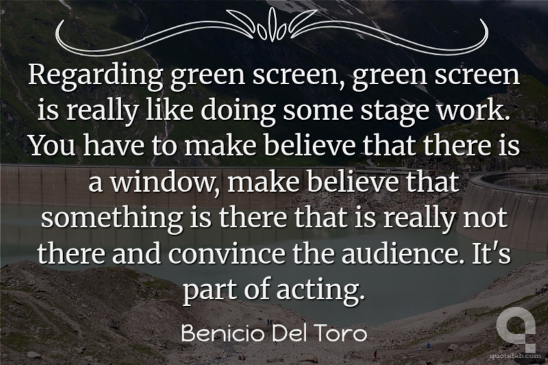 Regarding green screen, green screen is really like doing some stage work. You have to make believe that there is a window, make believe that something is there that is really not there and convince the audience. It's part of acting.