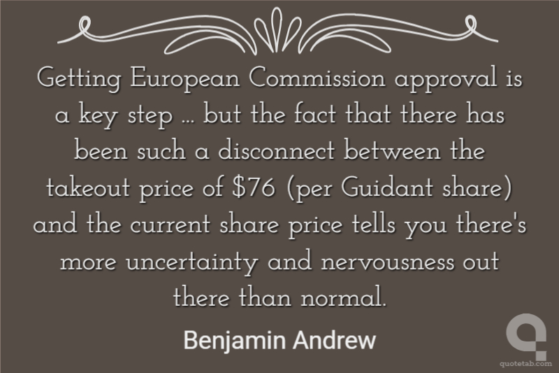 Getting European Commission approval is a key step ... but the fact that there has been such a disconnect between the takeout price of $76 (per Guidant share) and the current share price tells you there's more uncertainty and nervousness out there than normal.
