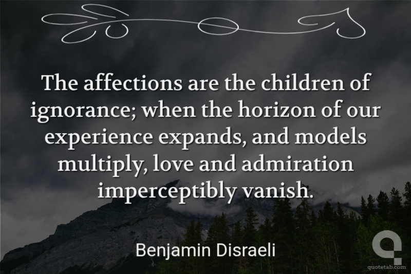 The affections are the children of ignorance; when the horizon of our experience expands, and models multiply, love and admiration imperceptibly vanish.