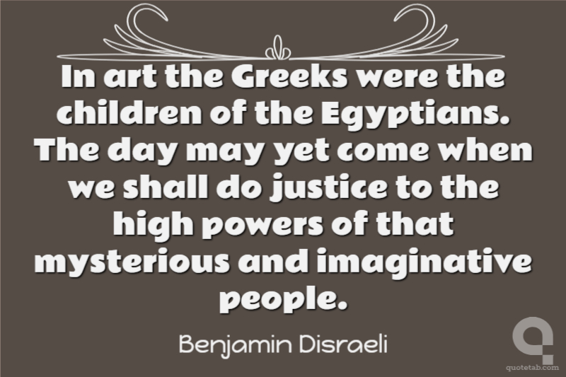 In art the Greeks were the children of the Egyptians. The day may yet come when we shall do justice to the high powers of that mysterious and imaginative people.