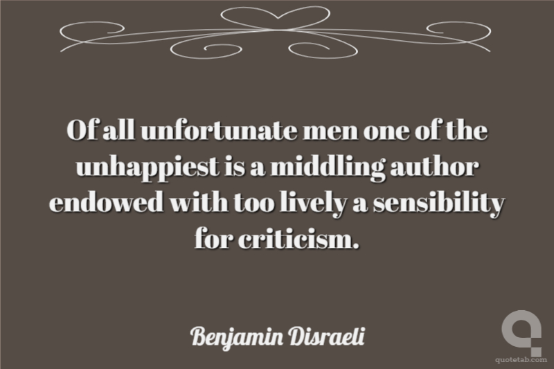 Of all unfortunate men one of the unhappiest is a middling author endowed with too lively a sensibility for criticism.