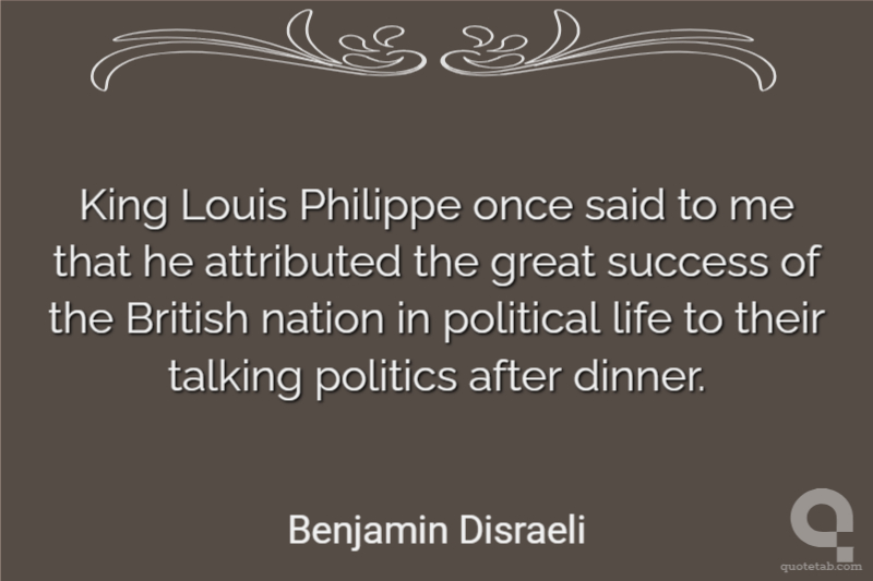 King Louis Philippe once said to me that he attributed the great success of the British nation in political life to their talking politics after dinner.