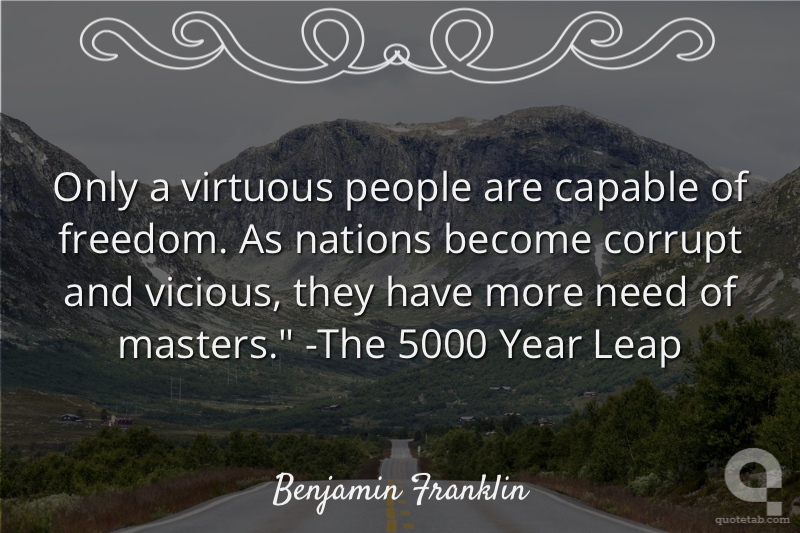 Only a virtuous people are capable of freedom. As nations become corrupt and vicious, they have more need of masters." -The 5000 Year Leap