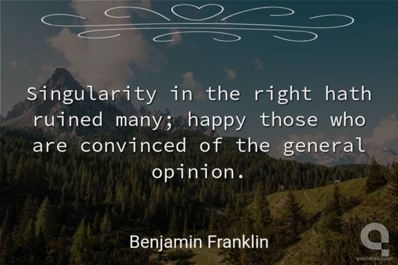 Singularity in the right hath ruined many; happy those who are convinced of the general opinion.
