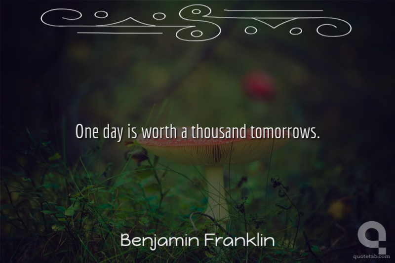 One today is worth two tomorrows; never leave that till tomorrow which you can do today.