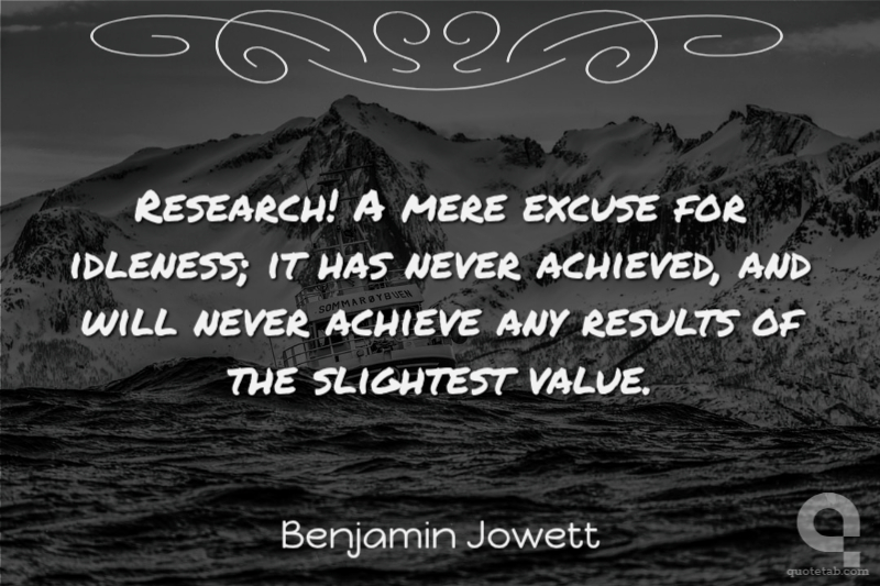 Research! A mere excuse for idleness; it has never achieved, and will never achieve any results of the slightest value.