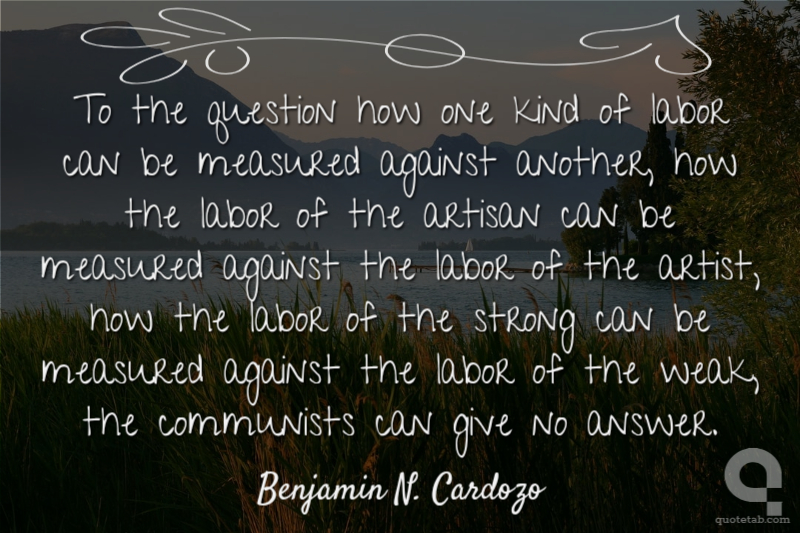 To the question how one kind of labor can be measured against another, how the labor of the artisan can be measured against the labor of the artist, how the labor of the strong can be measured against the labor of the weak, the communists can give no answer.