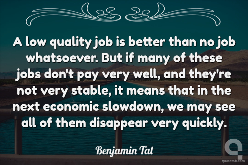 A low quality job is better than no job whatsoever. But if many of these jobs don't pay very well, and they're not very stable, it means that in the next economic slowdown, we may see all of them disappear very quickly.