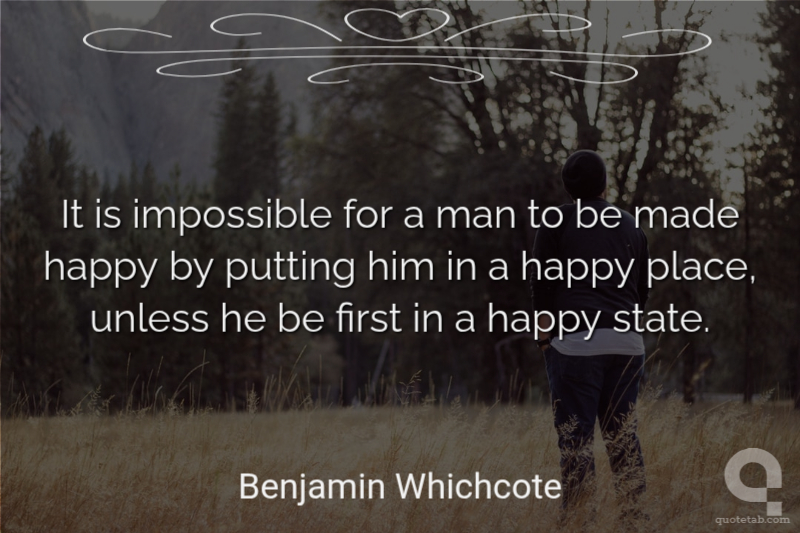It is impossible for a man to be made happy by putting him in a happy place, unless he be first in a happy state.