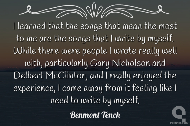 I learned that the songs that mean the most to me are the songs that I write by myself. While there were people I wrote really well with, particularly Gary Nicholson and Delbert McClinton, and I really enjoyed the experience, I came away from it feeling like I need to write by myself.