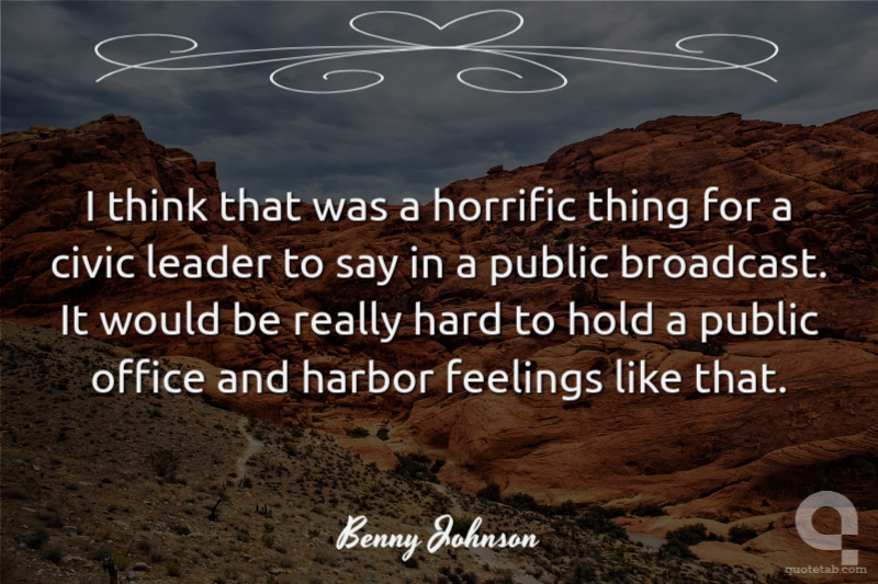 I think that was a horrific thing for a civic leader to say in a public broadcast. It would be really hard to hold a public office and harbor feelings like that.