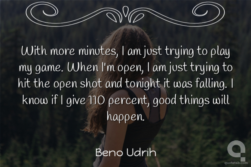 With more minutes, I am just trying to play my game. When I'm open, I am just trying to hit the open shot and tonight it was falling. I know if I give 110 percent, good things will happen.