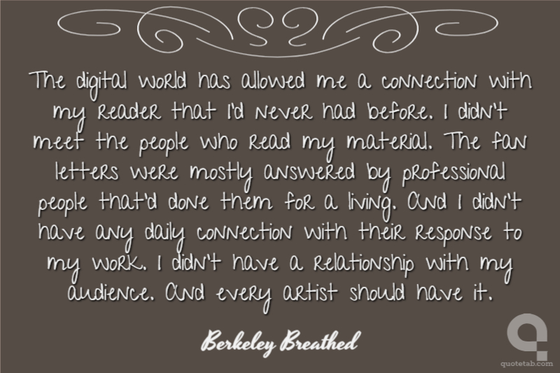 The digital world has allowed me a connection with my reader that I'd never had before. I didn't meet the people who read my material. The fan letters were mostly answered by professional people that'd done them for a living. And I didn't have any daily connection with their response to my work. I didn't have a relationship with my audience. And every artist should have it.