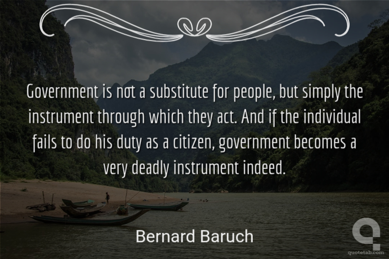 Government is not a substitute for people, but simply the instrument through which they act. And if the individual fails to do his duty as a citizen, government becomes a very deadly instrument indeed.