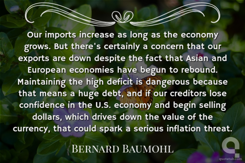 Our imports increase as long as the economy grows. But there's certainly a concern that our exports are down despite the fact that Asian and European economies have begun to rebound. Maintaining the high deficit is dangerous because that means a huge debt, and if our creditors lose confidence in the U.S. economy and begin selling dollars, which drives down the value of the currency, that could spark a serious inflation threat.