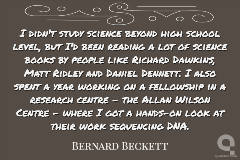I didn't study science beyond high school level, but I'd been reading a lot of science books by people like Richard Dawkins, Matt Ridley and Daniel Dennett. I also spent a year working on a fellowship in a research centre - the Allan Wilson Centre - where I got a hands-on look at their work sequencing DNA.