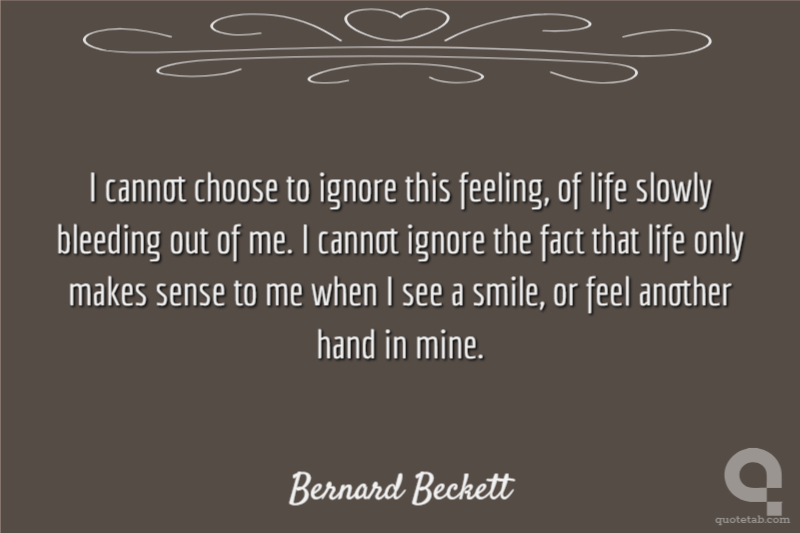 I cannot choose to ignore this feeling, of life slowly bleeding out of me. I cannot ignore the fact that life only makes sense to me when I see a smile, or feel another hand in mine.