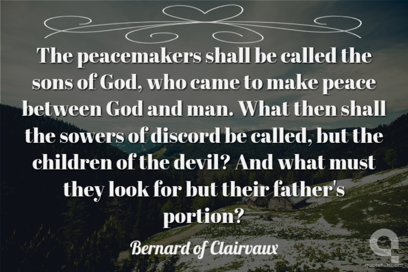 The peacemakers shall be called the sons of God, who came to make peace between God and man. What then shall the sowers of discord be called, but the children of the devil? And what must they look for but their father's portion?