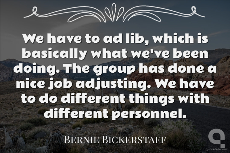 We have to ad lib, which is basically what we've been doing. The group has done a nice job adjusting. We have to do different things with different personnel.