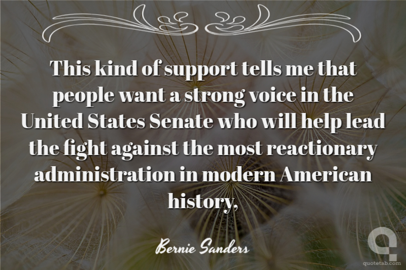 This kind of support tells me that people want a strong voice in the United States Senate who will help lead the fight against the most reactionary administration in modern American history,