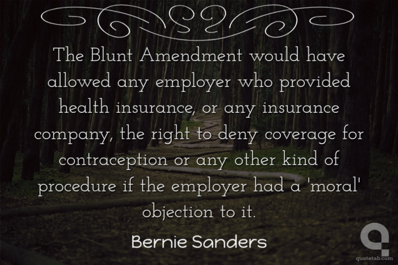 The Blunt Amendment would have allowed any employer who provided health insurance, or any insurance company, the right to deny coverage for contraception or any other kind of procedure if the employer had a 'moral' objection to it.