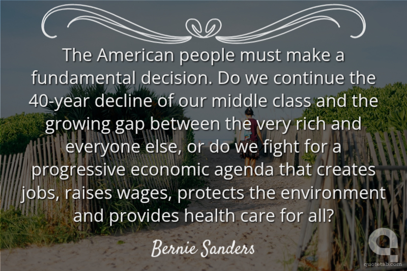 The American people must make a fundamental decision. Do we continue the 40-year decline of our middle class and the growing gap between the very rich and everyone else, or do we fight for a progressive economic agenda that creates jobs, raises wages, protects the environment and provides health care for all?