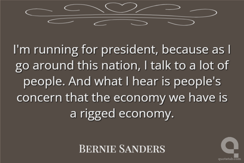 I'm running for president, because as I go around this nation, I talk to a lot of people. And what I hear is people's concern that the economy we have is a rigged economy.