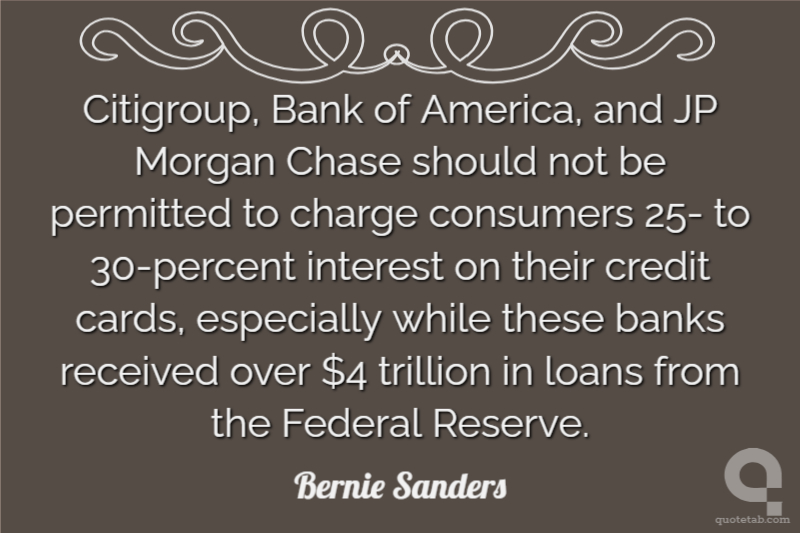 Citigroup, Bank of America, and JP Morgan Chase should not be permitted to charge consumers 25- to 30-percent interest on their credit cards, especially while these banks received over $4 trillion in loans from the Federal Reserve.
