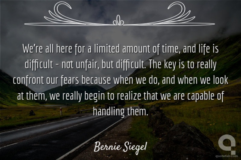 We're all here for a limited amount of time, and life is difficult - not unfair, but difficult. The key is to really confront our fears because when we do, and when we look at them, we really begin to realize that we are capable of handling them.