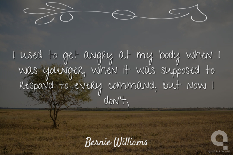 I used to get angry at my body when I was younger, when it was supposed to respond to every command, but now I don't,
