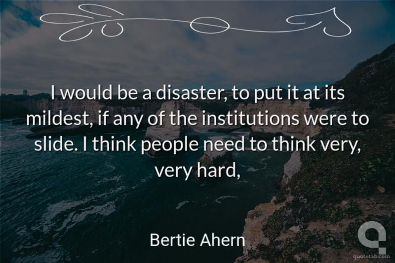 I would be a disaster, to put it at its mildest, if any of the institutions were to slide. I think people need to think very, very hard,