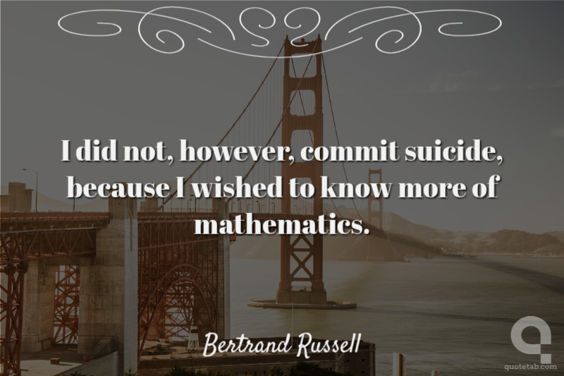 I did not, however, commit suicide, because I wished to know more of mathematics.