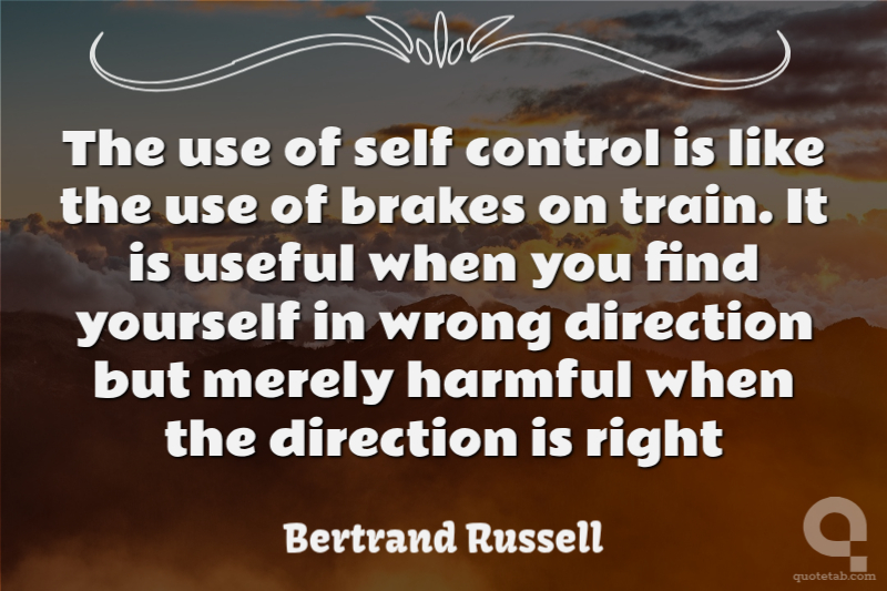 The use of self control is like the use of brakes on train. It is useful when you find yourself in wrong direction but merely harmful when the direction is right