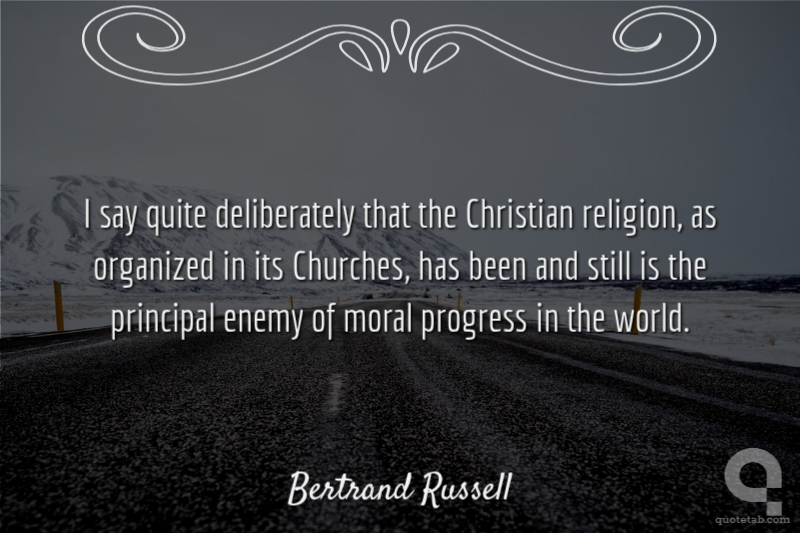 I say quite deliberately that the Christian religion, as organized in its Churches, has been and still is the principal enemy of moral progress in the world.