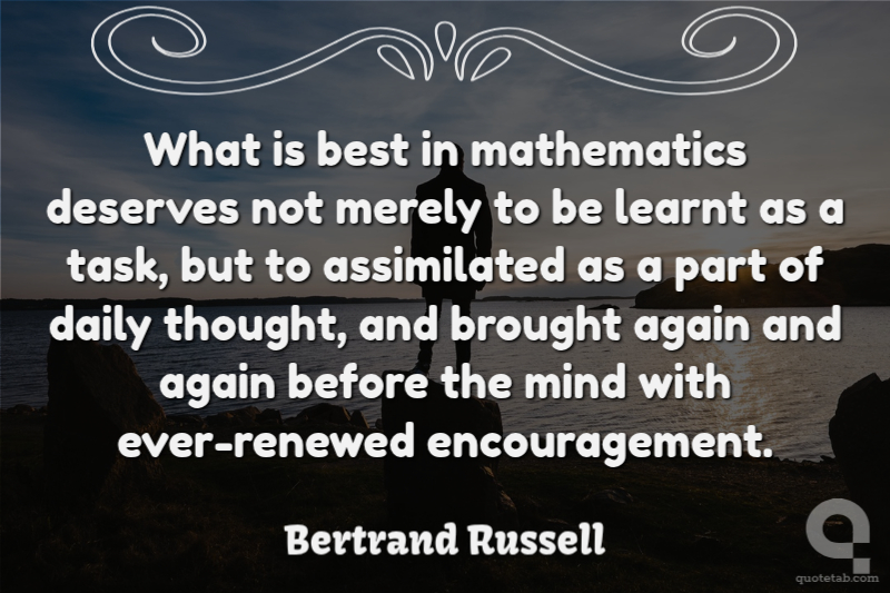 What is best in mathematics deserves not merely to be learnt as a task, but to assimilated as a part of daily thought, and brought again and again before the mind with ever-renewed encouragement.