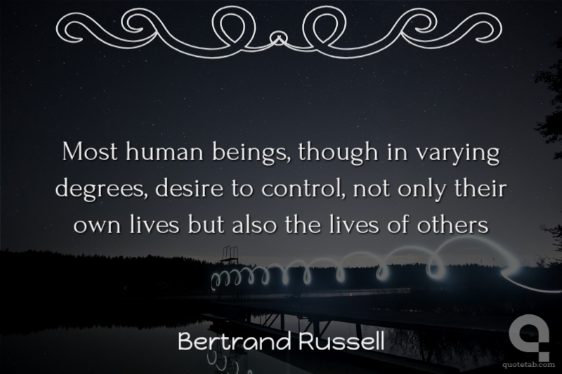 Most human beings, though in varying degrees, desire to control, not only their own lives but also the lives of others