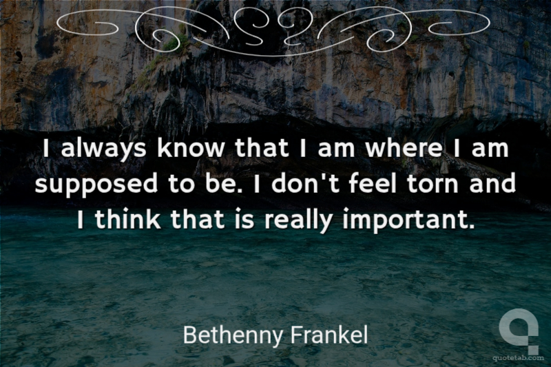 I always know that I am where I am supposed to be. I don't feel torn and I think that is really important.