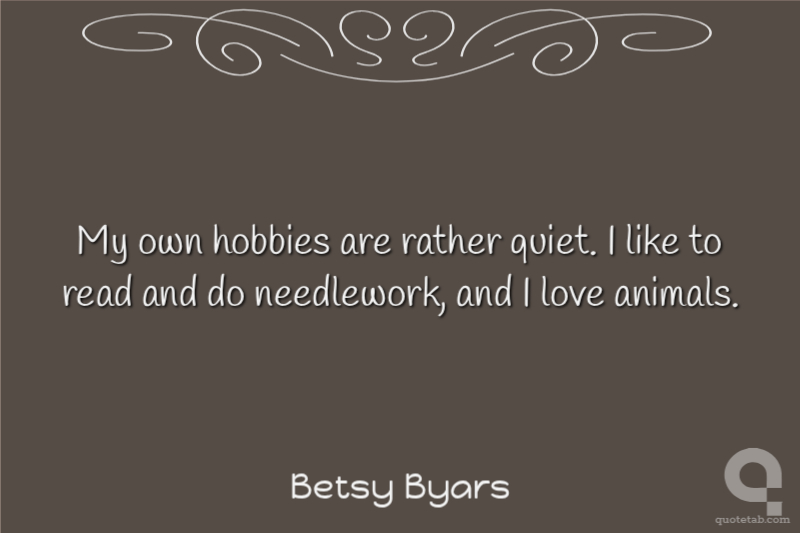 My own hobbies are rather quiet. I like to read and do needlework, and I love animals.