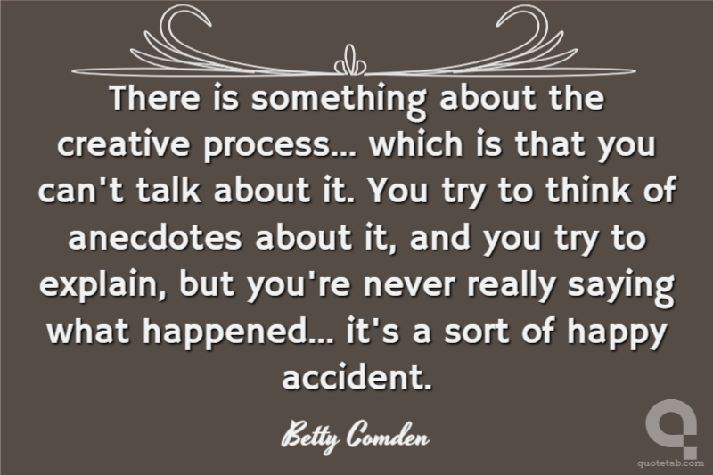 There is something about the creative process... which is that you can't talk about it. You try to think of anecdotes about it, and you try to explain, but you're never really saying what happened... it's a sort of happy accident.