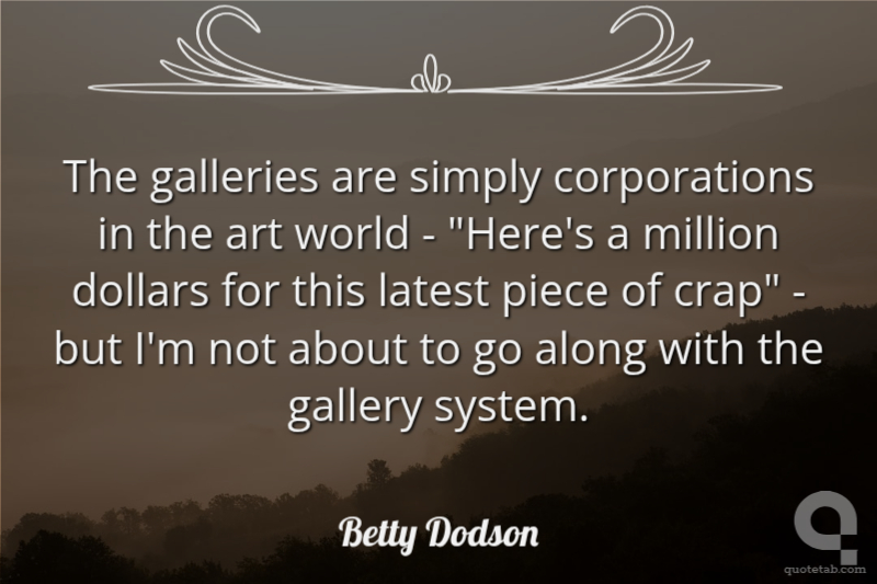 The galleries are simply corporations in the art world - "Here's a million dollars for this latest piece of crap" - but I'm not about to go along with the gallery system.