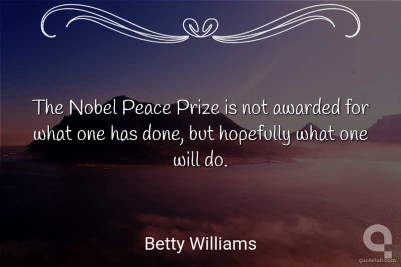 The Nobel Peace Prize is not awarded for what one has done, but hopefully what one will do.