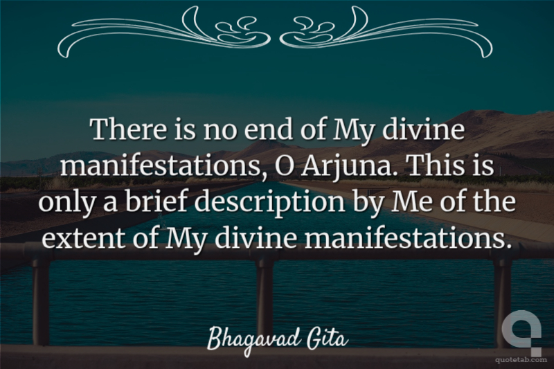 There is no end of My divine manifestations, O Arjuna. This is only a brief description by Me of the extent of My divine manifestations.