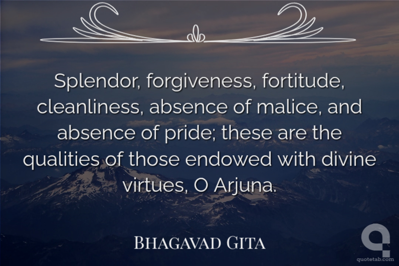 Splendor, forgiveness, fortitude, cleanliness, absence of malice, and absence of pride; these are the qualities of those endowed with divine virtues, O Arjuna.