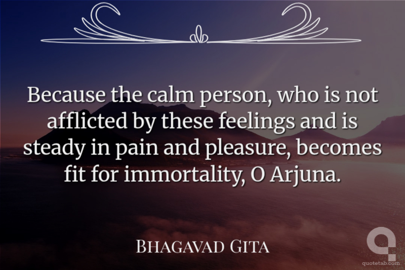 Because the calm person, who is not afflicted by these feelings and is steady in pain and pleasure, becomes fit for immortality, O Arjuna.